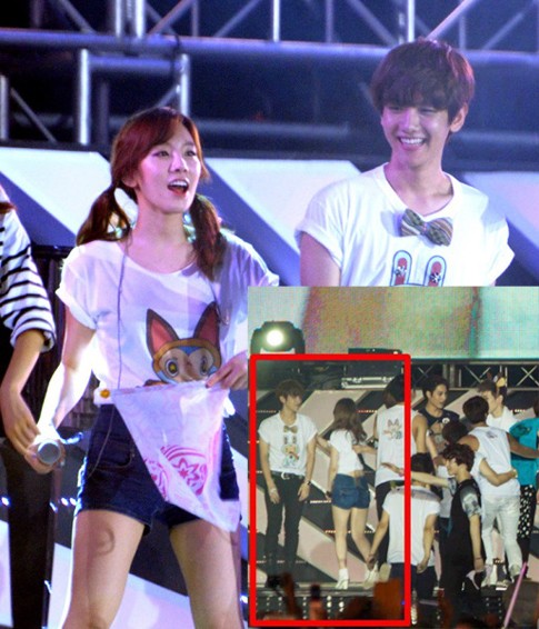 Sebuah foto kompilasi antara gaya Taeyeon dan Baekhyun diunggah netizen ke internet. Keduanya tampak bergaya dengan membuka telunjuk dan ibu jarinya di bawah dagu.