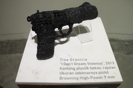 Mengambil bentuk pistol Browning High-Power 9 mmm ini, Tisa menyimbolkan bentuk kekuasaan birokrasi yang kuat tapi lemah di dalamnya. "Ini metafora birokrasi kita."