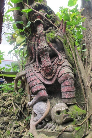 Bahkan ia juga menaruh berbagai patung di tiap sudutnya. Seperti patung seorang wanita di depan bale rumahnya. Serta patung leak yang berada di dalam akar pohon beringin.
