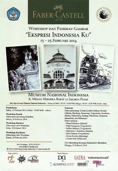 Sketsa bersama dengan Indonesia Sketchers's ini merupakan bagian dari serangkaian workshop dan pameran gambar 'Ekspresi IndonesiaKu' yang diselenggarakan pada 15 hingga 23 Februari 2014 di Museum Nasional.Β