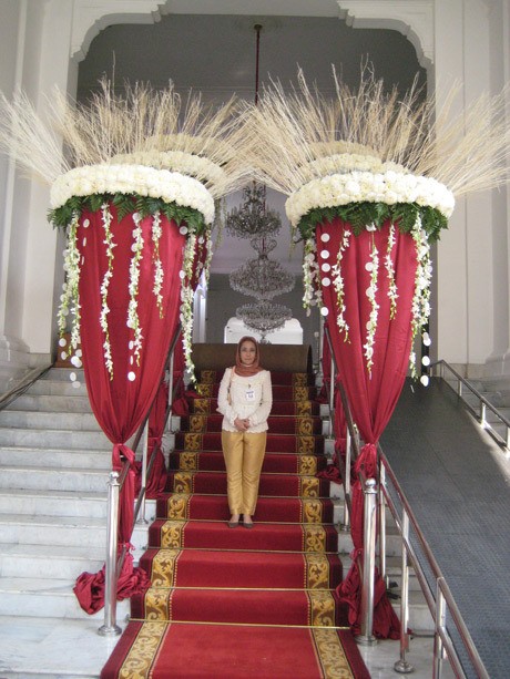 Khusus untuk tingkat kenegaraan, tentunya ada orang-orang yang memang ahli di bidang ini dan ditunjuk untuk mendekor ruang-ruang di Istana dengan rangkaian bunga yang juga khusus.