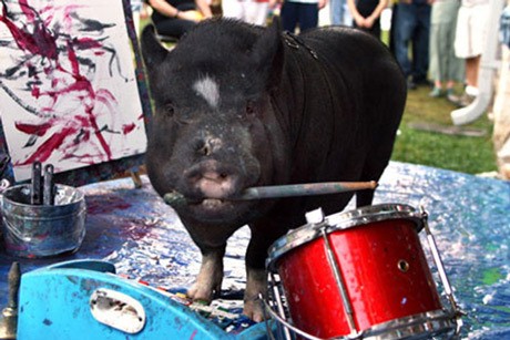 Kini, babi tersebut sudah menciptakan 100 lukisan abstrak dan telah menjadi selebriti di kawasan Virginia, tempat ia berdomisili. Karya-karyanya pun dijual untuk pendanaan amal.