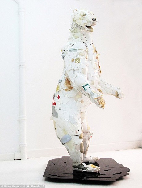 "Aku ingin bicara soal refleksi masa depan dari planet kita dan evolusi dari kehidupan, masyarakat yang berlebihan dalam konsumsi dan tantangan sumber daya alam juga kepunahan spesies." Karya buatan Gilles ini dipamerkan di Galerie 13, Paris.