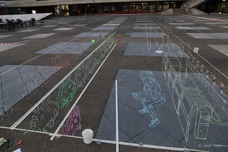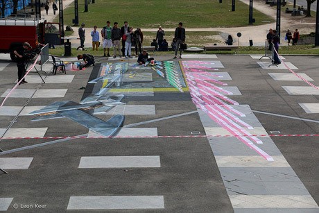 "Karya seni ini berukuran 150 meter persegi. Saya membuatnya selama enam hari. Karya ini akan masih bisa dinikmati hingga 10 April di kampus tersebut," kata Keer seperti dikutip The Huffington Post (26/3/2014). Karya-karya Keer juga bisa dinikmati di akun flickr-nya. Berikut proses kreatif pembuatan lukisan ini :