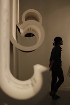 Ia juga memanfaatkan lampu UV yang berikan efek menyala dalam gelap untuk presentasi karyanya. Karya dengan dimensi 100 x 105 x 48 cm ini ia buat pada tahun 2012 lalu.