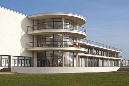 Bangunan ini dibuat atas tujuan untuk menjadikan kawasan Bexhill, Sussex sebagai tempat wisata para turis, dan ingin menyaingi pariwisata di Perancis dan Italia. The De le Warr Pavillion sudah beberapa kali mengalami restorasi, dan yang terakhir, restorasi menghapuskan hampir semua detail garis pada tubuh bangunan