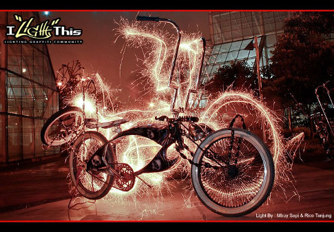 Si fotografer pun harus menyetel kameranya dengan ISO dan diafragma paling kecil. Setelah alat selesai dipersiapkan, fotografer berdiri di posisinya dan pelukis tinggal berkreasi.