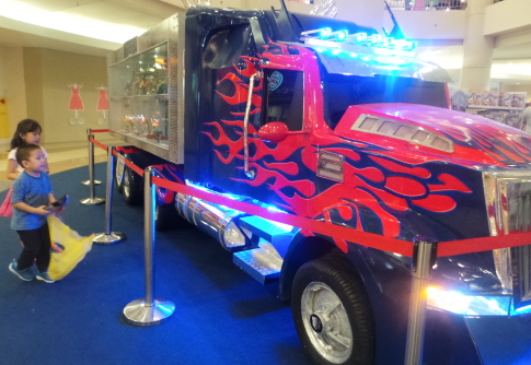 Uniknya di dalam badan truk ada lemari kaca yang berisi koleksi robot milik Komunitas Transformers Indonesia. Mulai dari berbagai versi Optimus Prime film pertama sampai keempat, Deception, Bumblebee dan kerabat dari Autobots, hingga yang terbaru robot berbentuk dinosaurus, Dinobots. Wow!
