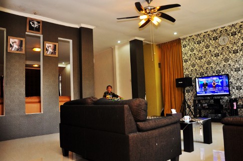 Serta furniture sofa berwarna hitam. "Di sini saya biasa menghabiskan waktu bareng anak. Suka nonton televisi juga di sini," kata RD.