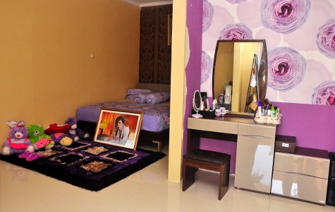 "Kalau saya punya rumah, sudah bercita-cita mau gaya minimalis. Kelihatan sederhana tapi sengaja dicat ungu dan dikasih wallpaper," ungkapnya.