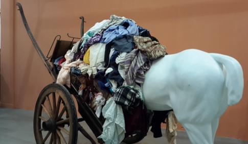 Memasuki ke ruangan berikutnya, para pengunjung dapat melihat andong yang diisi oleh baju-baju tak terpakai dengan patung kuda yang terlihat bagian belakang. 'Still Shy #02' karya Eddi Prabandon menyimbolkan pepatah 'menutupi mukanya membiarkan pantatnya'.