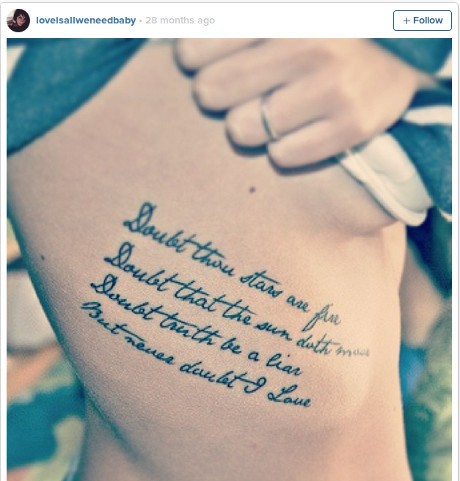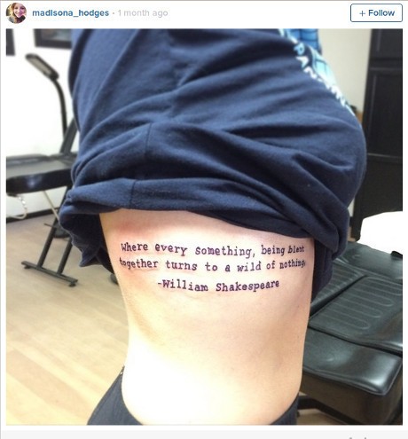 Namun, tato-tato di bawah yang berisikan kalimat puitis Shakespeare hanya dimengerti oleh penggemarnya. Seperti apa?