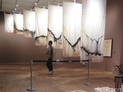 Di seberangnya lagi, tak lagi eksklusif menggunakan frame, tapi Tang memajang kain yang berukuran raksasa hingga mencapai langit-langit galeri. Karya yang bermakna sama seperti sebelumnya itu terlihat lebih jelas di mata pengunjung. Berjudul 'Gully Curtains' (1979) dan menggunakan tinta serta pigmen yang ada dalam pembuatan pakaian khas tradisional.