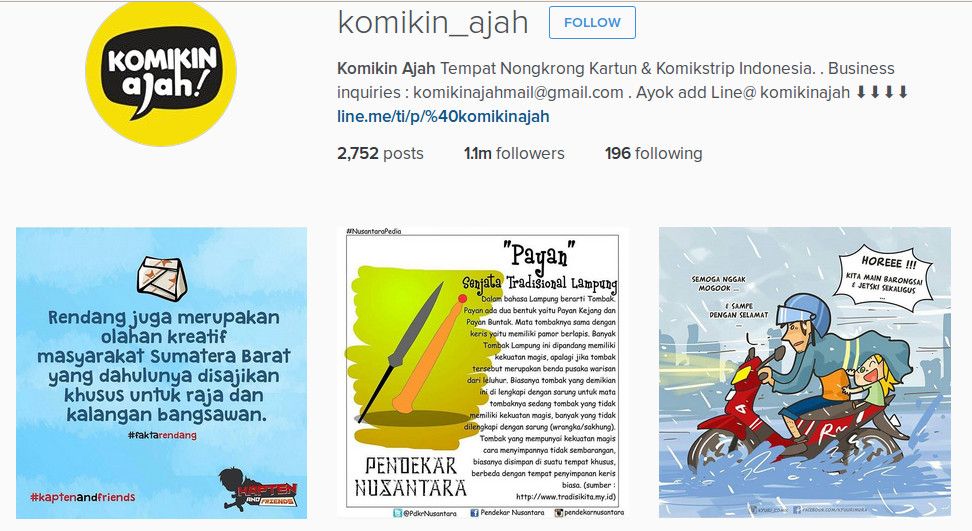 "Saat banyaknya komik-komik yang berkeliaran di Instagram, Komikin Ajah menjadi akun yang pertama me-repost dan merangkum komik-komik terbaik yang sudah dibuat oleh para komikus Instagram," ucapnya Jumat (12/2/2016).