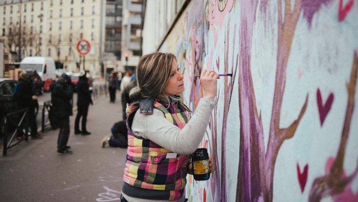 Seorang ibu mengatakan bahwa dindingnya dijuluki dengan nama 'Le Mur de l'Amour' atau 'dinding cinta'. "Dinding ini menyimbolkan perdamaian dan cinta kasih," ujar pria yang lewat di depannya.