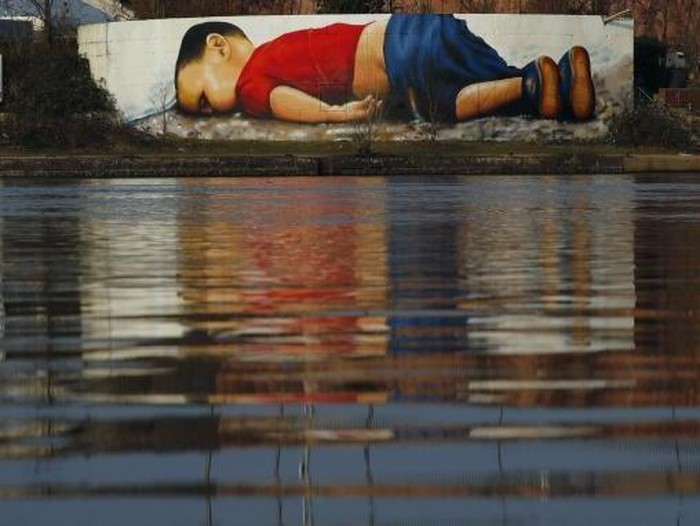 Proyek grafiti 'Aylan Kurdi' telah menghabiskan 50 liter cat dinding atau sekitar 80 kaleng cat semprot. "Kami ingin memprovokasi dan membawa isu pengungsi ke pintu pemerintahan Jerman," tambahnya.