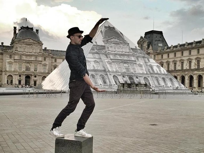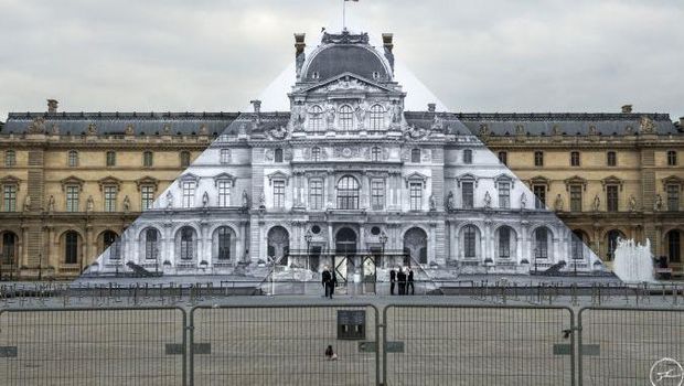 Seorang seniman jalanan asal Prancis yang dikenal dengan inisial JR adalah sosok di balik menghilangnya Museum Louvre. Dengan melepas trik optik layaknya pesulap, dia menggunakan cetakan foto raksasa untuk menciptakan ilusi optik dalam skala besar.