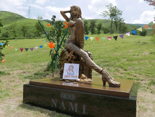Satu per satu karakter yang ada dalam manga dan anime One Piece dijadikan patung. Kini giliran patung Nami yang dibangun di Prefektur Kumamoto, Jepang, pekan lalu.