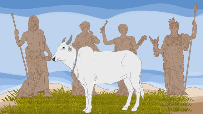 Di sini, kami adalah sapi-sapi, tapi kini Zeus bertanya tentang kekasih. Keluar dari sini, apakah kami sapi-sapi, atau dewa-dewi, atau orang-orang tanpa identitas kecuali nama?