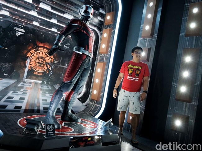 Di bagian depan, ada pintu masuk ke eksibisi yang mengenalkan berbagai karakter superhero Marvel. Marvel Studios kini sukses menghasilkan 25 original film dan 5 series yang digilai penggemarnya di seluruh dunia.