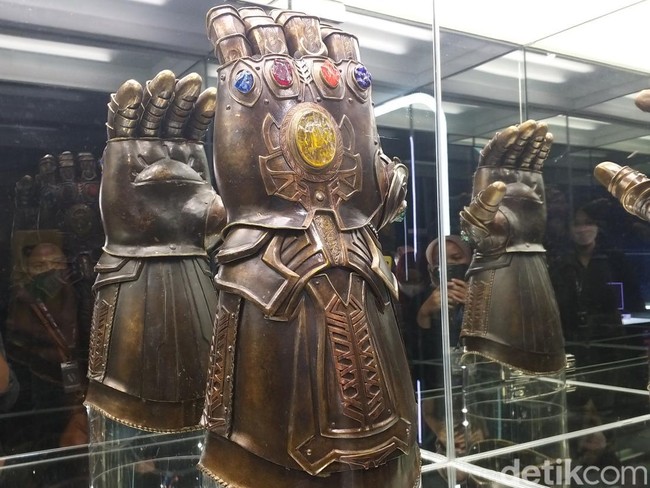 "Ini juga datang langsung dari properti Marvel Studios. Semua yang ada di sini asli termasuk sarung tangan Thanos seberat 8 kilo ini," katanya.