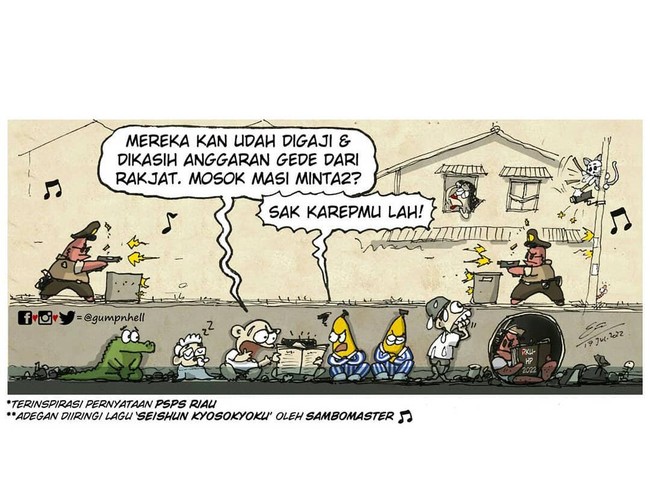 Terkuaknya kasus Ferdy Sambo sebulan yang lalu itu turut dikritisi oleh komikus Gump n Hell. Adalah komikus Errik Irawan yang menyentil maraknya isu di dunia kepolisian lewat komik yang diunggahnya pertengahan Juli lalu.