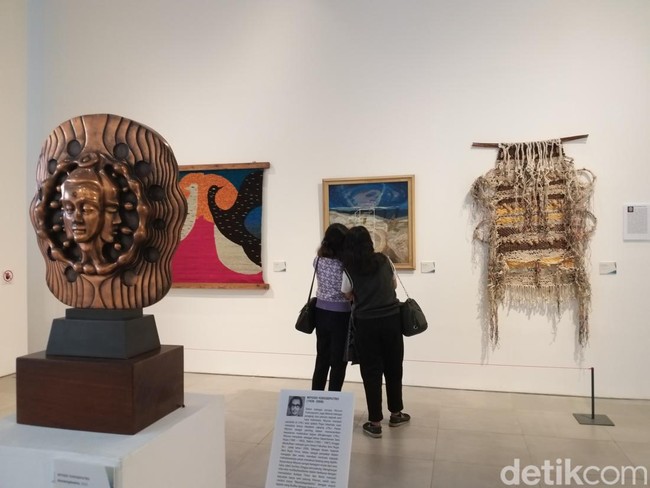 Uniknya di salah satu ruang pamer ada lukisan Jim Supangkat yang berjudul Pengumuman. Karya yang dibuat pada 1975 itu berdampingan dengan Patung Bayi yang dibuatnya pada 1974.