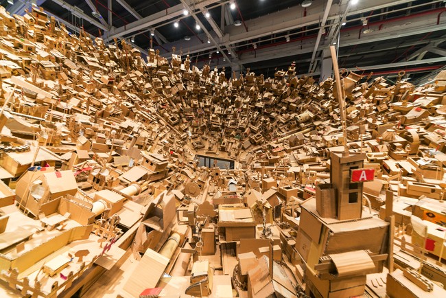 Praktik kolaboratif Aquilizan kerap berkisar pada lingkungan rumah dan keluarga, menggabungkan material-material yang mudah ditemukan seperti kardus, kertas, dan kantong plastik.