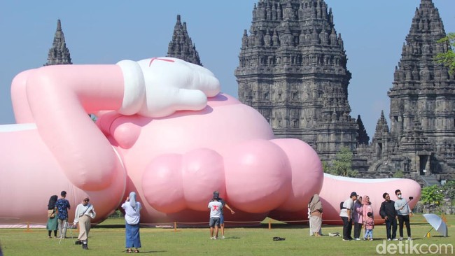 Simak Video "Melihat dari Dekat Patung KAWS Raksasa 'Rebahan' di Candi Prambanan"