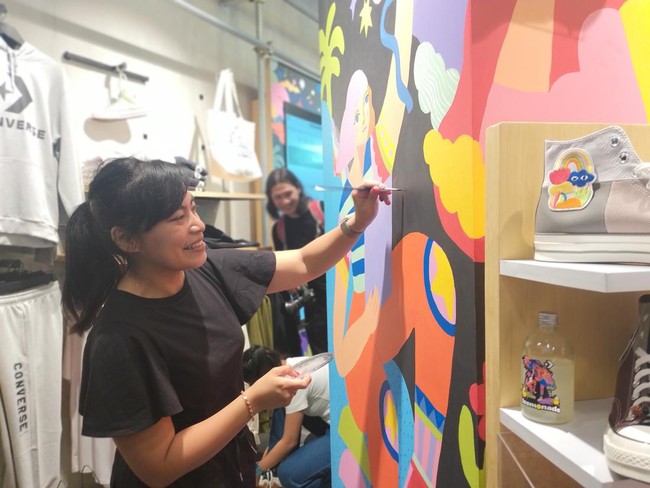 Diela Maharanie dikenal sebagai ilustrator yang telah melanglang buana dan berkolaborasi dengan banyak brand. Lulusan Akutansi di UIN Ciputat itu kini berkolaborasi dengan Converse dan melakukan 'hack the store' di toko yang berada di Mall Kota Kasablanka, Jakarta Selatan, hari ini.