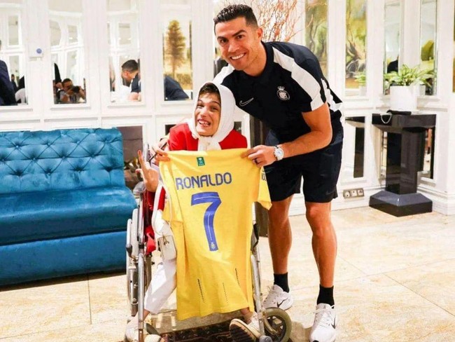 "Pelukis Iran Fatima mengunjungi markas tim (Al-Nassr) di Teheran Dan dia bertemu dengan kapten #l-Nassr, Cristiano Ronaldo Pelukis Iran Fatimah bertemu dengan Idola @Cristiano," tulis unggahan klub Al-Nassr via Instagram @alnassr.