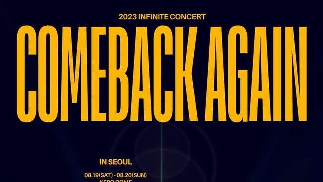 INFINITE sebelumnya sudah mengumumkan comeback mereka dengan enam orang member: Sunggyu, L, Sungyeol, Dongwoo, Sungjong, dan Woohyun. Comeback yang dimaksud adalah sebuah konser yang diberi tajuk COMEBACK AGAIN yang akan dimulai di Seoul pada 19 dan 20 Agustus 2023.