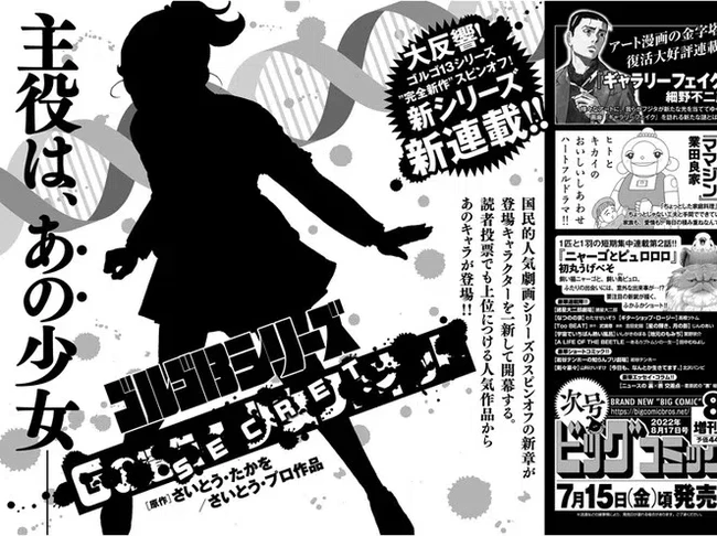 Spin-off manga Golgo 13 rencananya bakal debut di majalah edisi Agustus pada 15 Juli 2022.