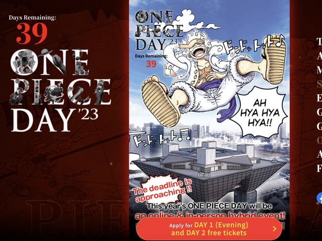 Sejak 2017, Asosiasi Hari Jadi Jepang telah meresmikan tanggal 22 Juli sebagai One Piece Day atau Hari One Piece. Tahun lalu, One Piece Day juga berlangsung pada 22-23 Juli dan streaming via YouTube.