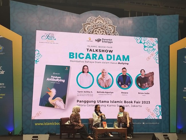 "Sejak 2014 kami berjalan, banyak sekali masyarakat yang tidak paham bullying itu apa. Dari definisi sampai ke bentuk-bentuk bullying itu sendiri. Dari situ, kita merasa perlu buku panduan yang membantu masyarakat supaya lebih terbuka mata tentang apa itu bullying," ungkap Tantri di panggung utama Islamic Book Fair di Istora Senayan, Jakarta Pusat, Rabu (20/9/2023).