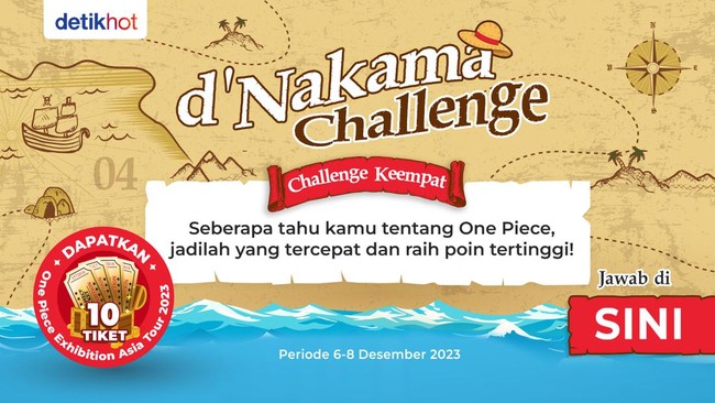 Melalui d'Nakama Challenge, detikHOT telah membagikan 30 tiket gratis untuk para Nakama. Kini d'Nakama Challenge memasuki challenge terakhir dan masih tersisa 10 tiket GRATIS buat kamu!