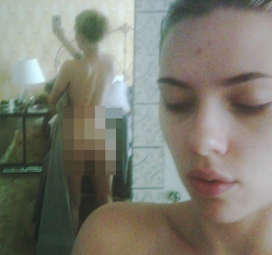 Baru-baru ini beredar foto bugil Scarlett Johansson di internet. Dalam foto tersebut, terlihat bintang 'The Black Dahlia' itu memotret dirinya dalam pose berdiri membelakangi cermin.