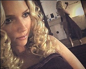 Dia memotret dirinya tanpa sehelai benang pun menutupi bagian belakang tubuhnya. Alhasil bokongnya terlihat jelas melalui pantulan cermin itu.