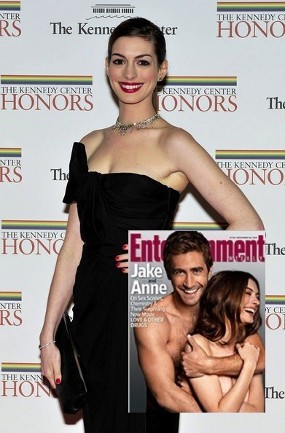 Anne Hathaway juga termasuk dalam 10 besar foto topless yang banyak diperbincangkan. Berbeda dengan yang lain, ia tampil berdua dengan lawan mainnya di film 'Love and Other Drugs' Jake Gyllenhaal.