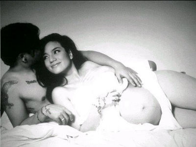 Sheila hanya menggunakan tangannya untuk menutupi payudaranya. Sedangkan perut hamilnya begitu bebas menyembul, hampir serupa dengan pose Demi Moore dan Britney Spears dalam cover sebuah majalah.