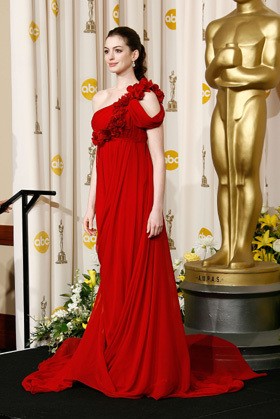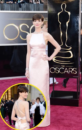 "I'm wearing Prada and my mom says it is business in front and party in the back," ujar Anne di red carpet.