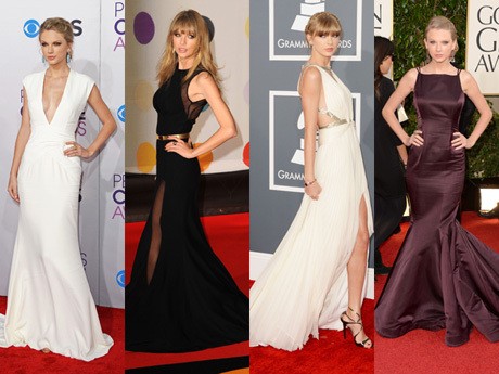 Taylor Swift sepertinya selalu cocok mengenakan busana apapun. Di ajang-ajang penghargaan, Taylor selalu terlihat anggun dan menawan dibalut gaun-gaun yang menyapu lantai.
