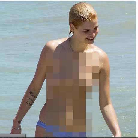 Mantan model pakaian dalam asal Inggris, Katie Green juga tertangkap kamera paparazzi terlihat topless beberapa waktu lalu. Ia hanya terlihat memakai celana dalam menutupi salah satu bagian intim di tubuhnya saja usai berenang di pantai.