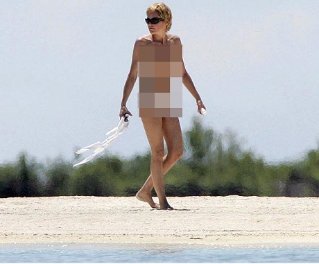 Hanya mengenakan celana dalam bercorak leoprad, Naomi Campbell tertangkap kamera tengah menikmati waktunya di sebuah pantai. Sebelumnya, Naomi juga sempat tampil topless untuk keperluan pemotretan sampul sebuah majalah di Inggris bersama Kate Moss pada akhir 2012 lalu.