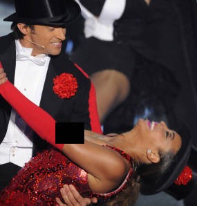 Saat bernyanyi bersama Hugh Jackman itulah baju Beyonce sedikit melorot. Alhasil dadanya pun tampak ngintip saat ia berada dalam pelukan aktor Australia itu. Saat berada di panggung Academy Awards, istri penyanyi Jay-Z itu mengenakan gaun merah yang sangat seksi.
