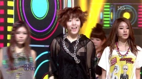 Girlband T-ara tampil di SBS 'Inkigayo' dengan 'Lovey Dovey'. Sayang, karena baju yang terlalu longgar, payudara Hwayoung pun ngintip. Hwayoung mengenakan baju hitam dan tembus pandang. Saat tengah menari dengan enerjik, payudaranya pun sempat terlihat.