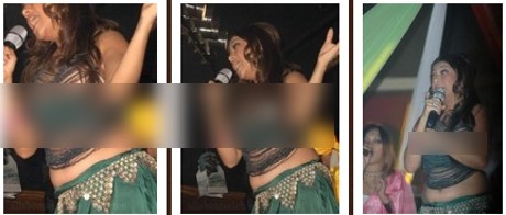 Foto Sarah Azhari sedang bernyanyi di atas panggung beredar beberapa tahun lalu membuat heboh. Pasalnya, Sarah bernyanyi dengan dress hijau berajut. Seperti tak sadar, Sarah memamerkan buah dadanya dengan jelas.