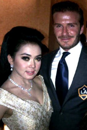 Dalam acara dinner Syahrini sempat berfoto pelukan dengan Becks.