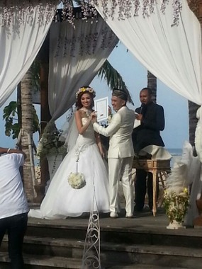 Pernikahan Ruben dan Wenda di gelar di sebuah chapel di daerah Nusa Dua, Bali. Dari foto yang diterima detikHOT, pasangan itu terlihat mengenakan pakaian pengantin serba putih.