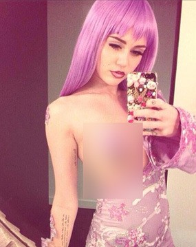 Namun, agar tidak terlalu 'polos', Miley melakukan bodypaint pada payudaranya itu.